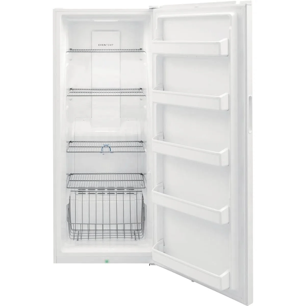 Flexible Interior Organization System: Easily organize your family frozen favorites with our four adjustable, metallic wire shelves, deep bottom basket, and five spacious door bins that allow you to make the most of every available square inch of your freezer.