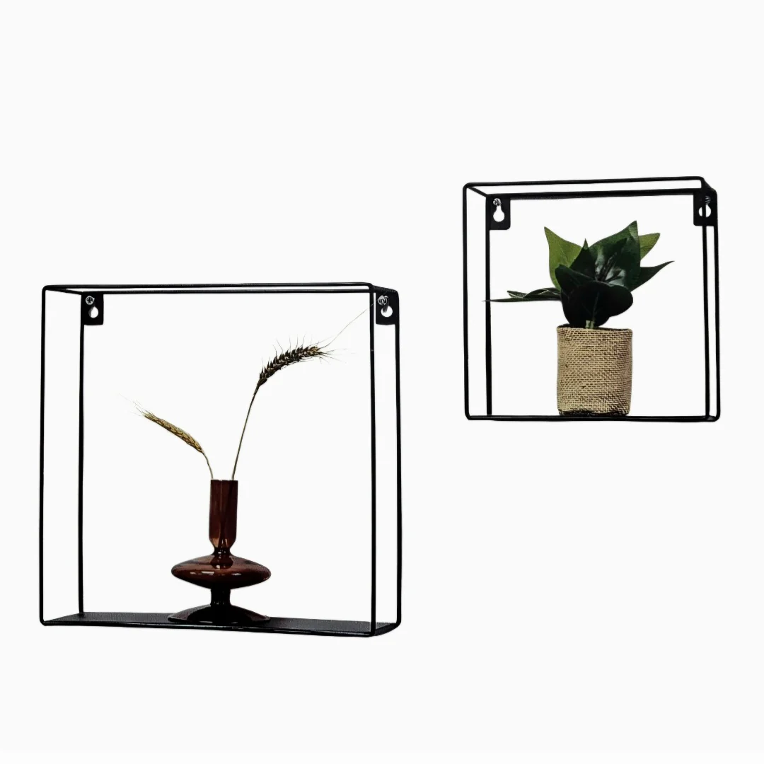 Transform your walls into a captivating display of style and functionality with our exquisite Wall 2 Pcs Shelf set (1 medium and one small). Crafted with a sturdy metal frame.