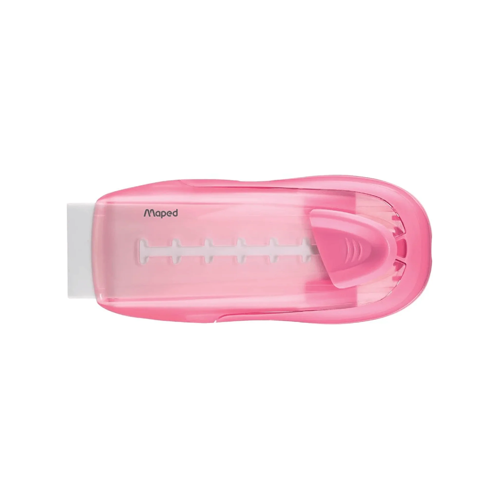 The eraser can be extended and retracted. Protected from dirt by a plastic case. Refillable with various standard format erasers. PVC-free and phthalate-free. Available in beautiful pastel colors: pink, blue and mint.